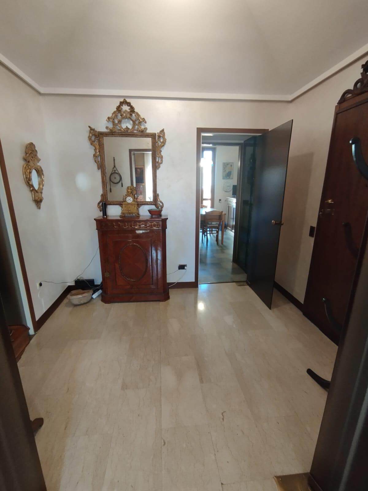 In stabile signorile dotato di portineria e doppio ascensore, proponiamo un appartamento di grande fascino così suddiviso: un primo ingresso di servizio che conduce alla cucina abitabile con balcone.