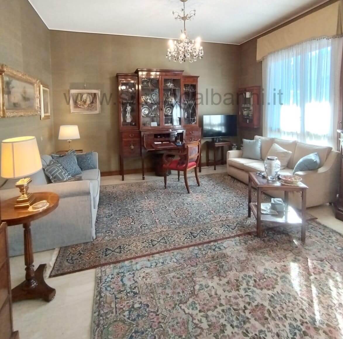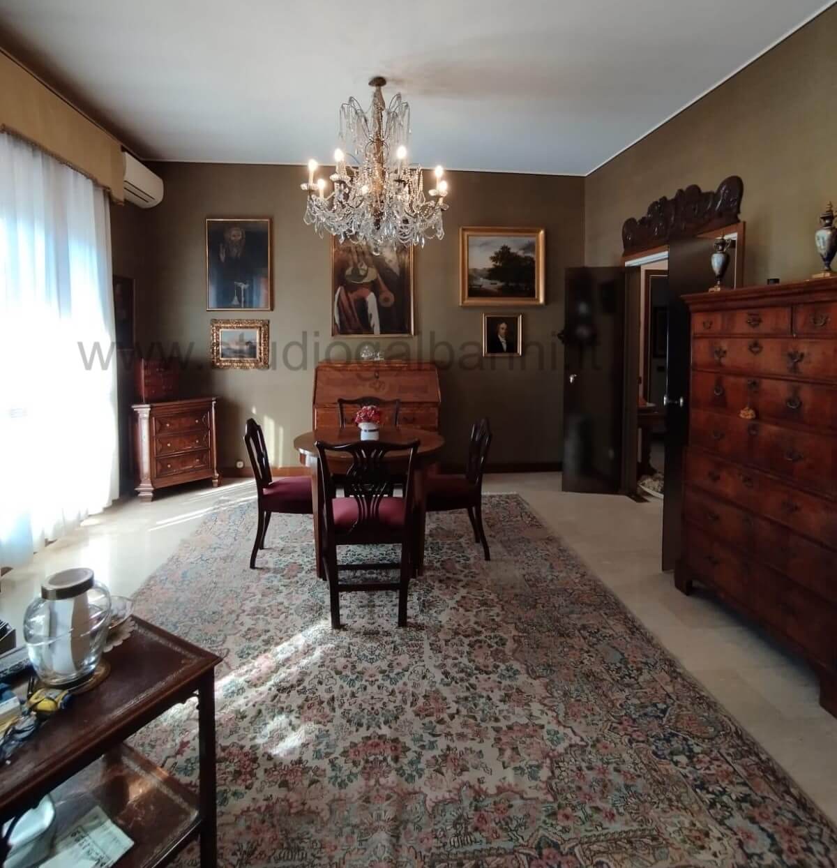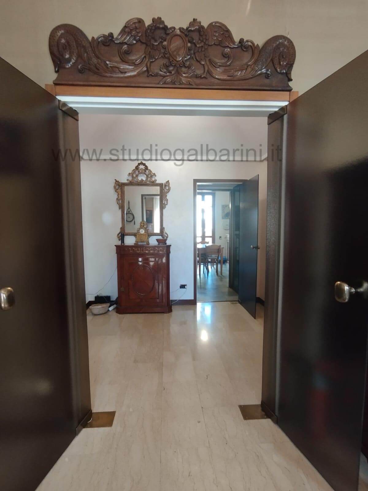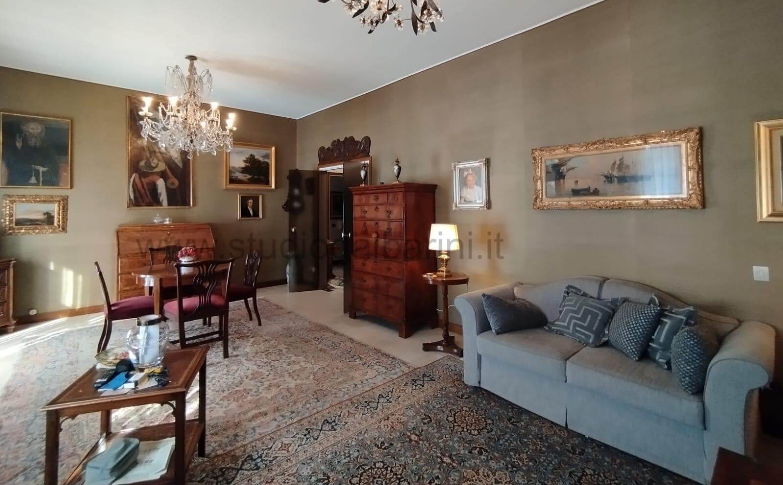 L’ingresso padronale, con volta decorativa, conduce al soggiorno doppio con accesso sull’ampio terrazzo. Due camere da letto di generose dimensioni, di cui una con porta finestra sul terrazzo, e due bagni di recente ristrutturazione.
